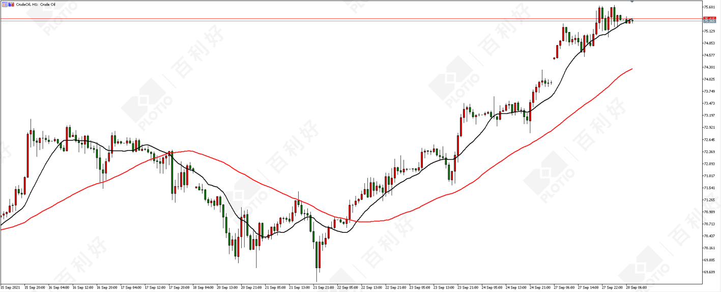 原油价格走势图:原油小时图