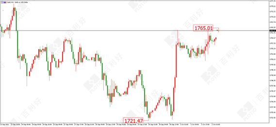 黄金方面:上周黄金前三个交易日震荡向下,最低触及1721美元的位置,周四(9月30日)因美股大跌,黄金获得支撑快速拉升。