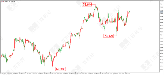 技术面:原油周线多头趋势,震荡上行。日线8月底触及61.80美元之后持续上涨,当前价格接近前高,从上周的回调来看,上破的概率大。日内来看,上方关注76美元的阻力,若突破看向77.60美元一线,下方关注74美元的支撑。