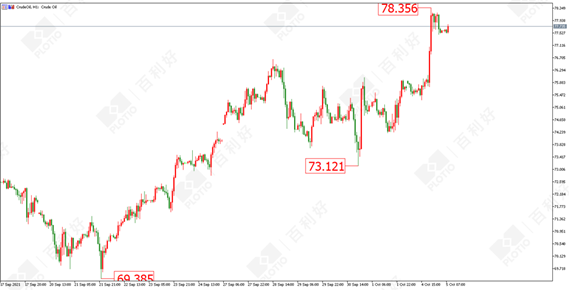 原油方面:原油昨日在OPEC+部长会议之后,大幅飙升,最高触及78.35美元的位置。