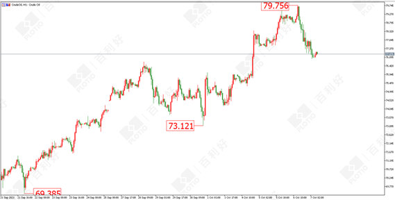 原油方面:原油昨日先冲高,后大幅回落,最高79.75美元,截至目前最低触及76.81美元的位置。