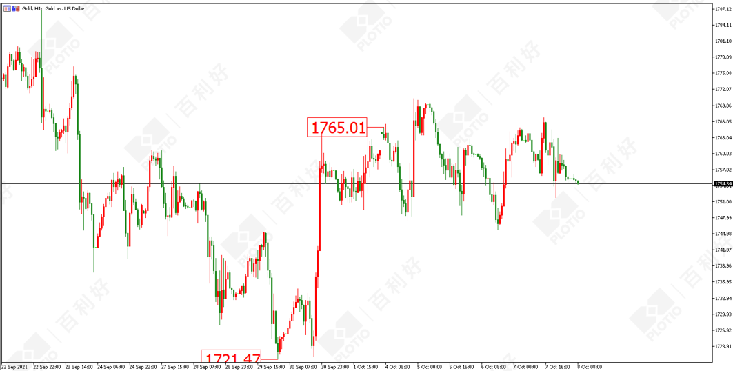 黄金方面:昨日(10月7日)黄金继续维持震荡走势,上方最高触及1766美元的位置,下方最低触及1751美元的位置。