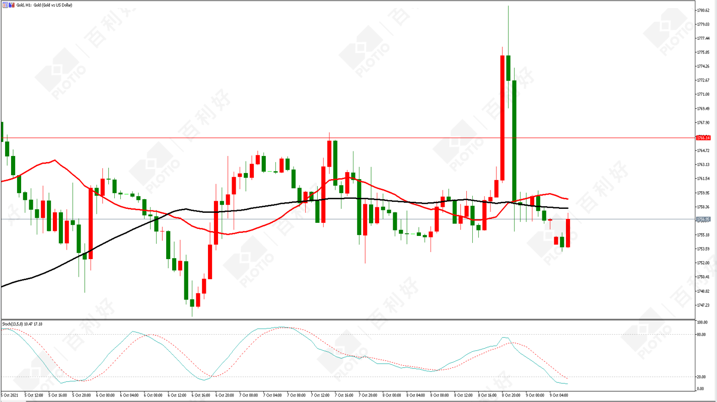黄金价格走势图:黄金小时图