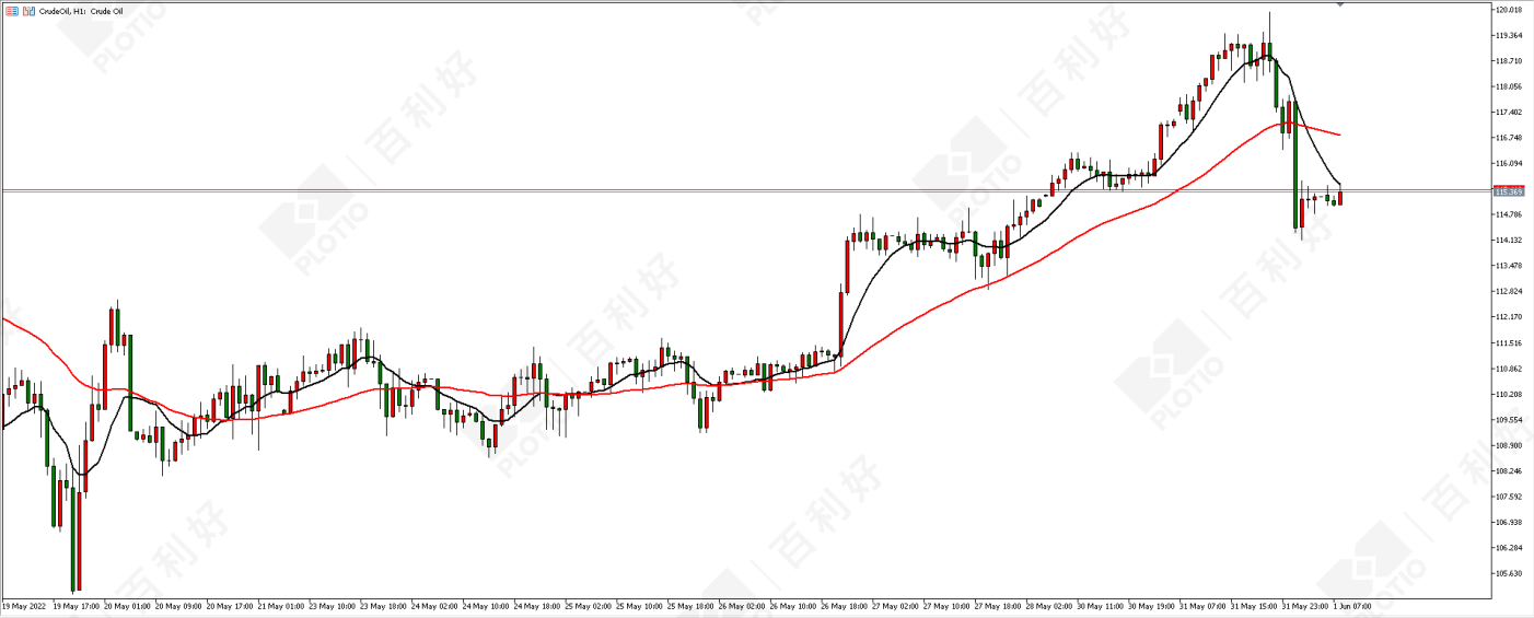 技术面:昨日(5月31日)金价跌穿13日均线,日跌幅1%,短线走势急转直下。原来预计本周金价会是窄幅震荡,大致在13日与55日均线之间运行。昨日这么一跌,多头不妙,今日如不能快速收回13日均线,则5浪下跌来临。