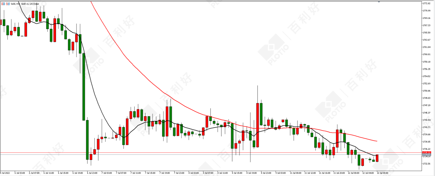 技术面:昨日(7月11日)金价小幅收跌,过去数个交易日累计跌幅不大,但创下去年10月以来的低点,弱势明显。技术指标上看,MACD位于零轴下方多时,多头想要逆转难度极大。今日重点关注1739美元多空分界。