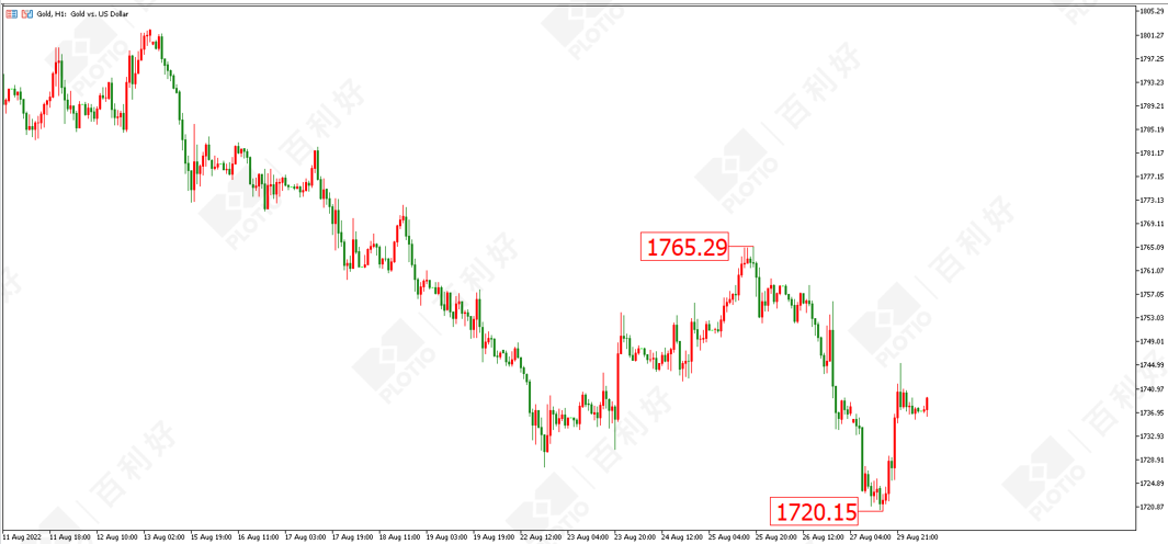 黄金方面:黄金昨日(8月29日)最低触及1720美元,晚间出现较大反弹,一举收复亚欧盘的跌幅。