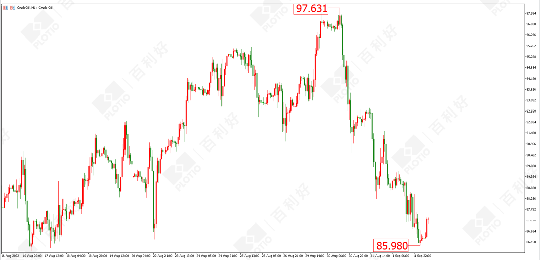 虽然上周沙特能源部长表示考虑减产,但市场并不买账,更多的偏向认为在下周一(9月5日)的OPEC+大会上保持产量稳定。同时当下各大资产均出现大幅下跌,原油需求预期下降正在拖累油价。