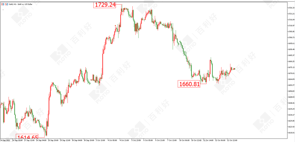 黄金方面:昨日(10月12日)黄金未能下破1660美元,短线表现为震荡。