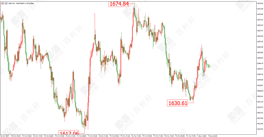 黄金方面:黄金昨日(11月1日)自1630美元大幅反弹,最高触及1656美元的位置。