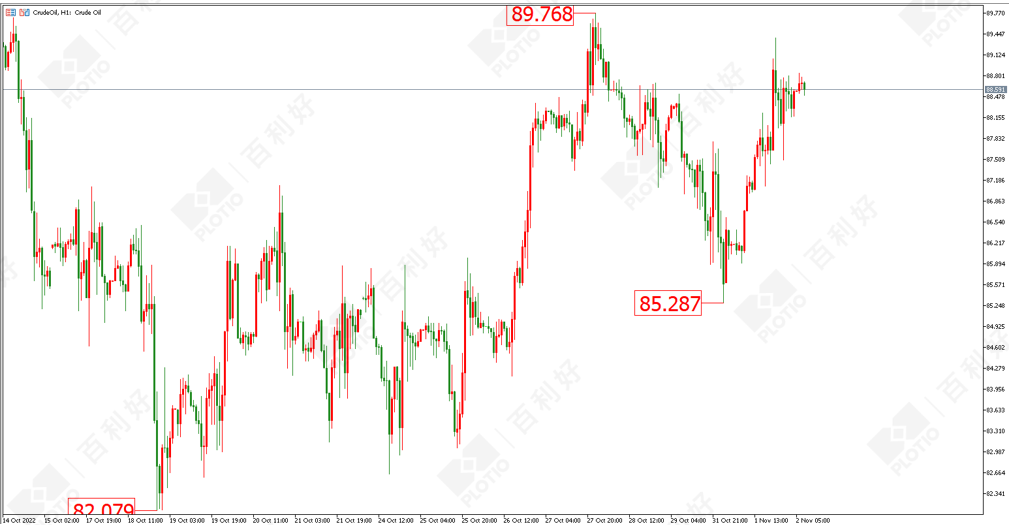 原油方面:原油昨日自85.28美元的低点大幅拉升,已经接近89.76美元的高点。