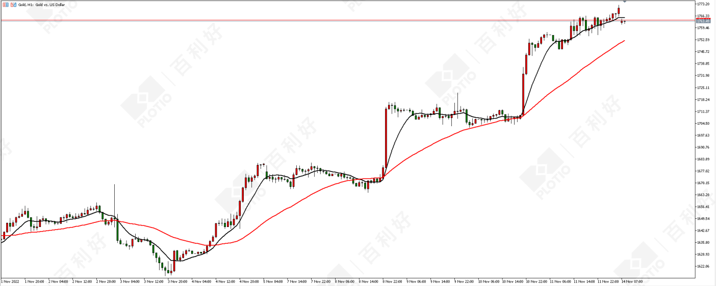 黄金价格走势图:黄金小时图