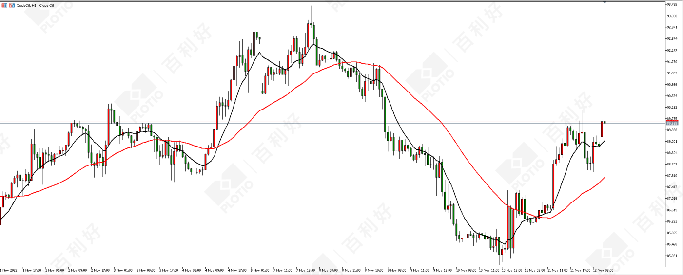 原油价格走势图:原油小时图