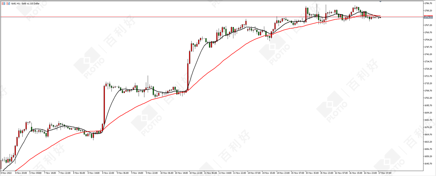 黄金价格走势图:黄金小时图