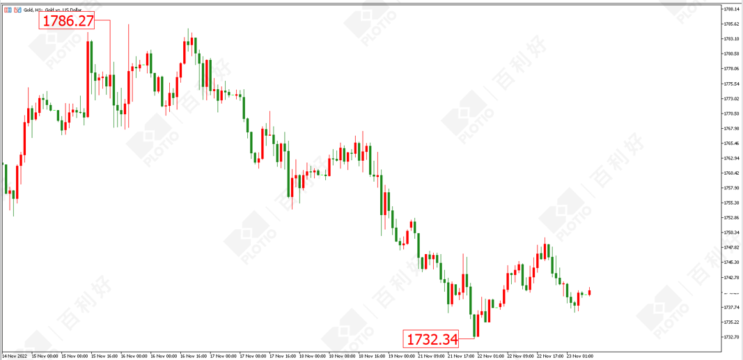 黄金方面:昨日(11月22日)黄金自1732美元一线反弹,最高触及1749美元的位置。