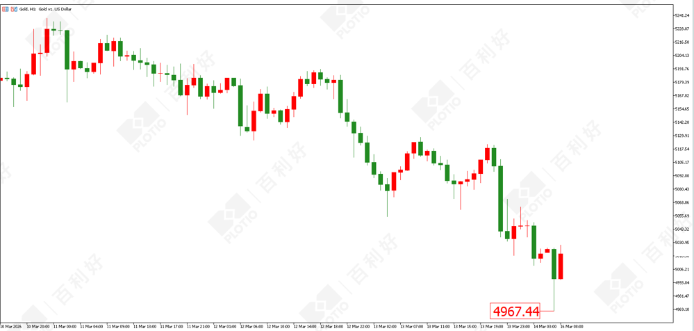 技术面:黄金昨日(3月16日)下跌至4967美元后,围绕5000美元上下震荡。短线来看,若不能上破5050美元,则有望进一步下跌,下方关注4920美元一线的支撑。