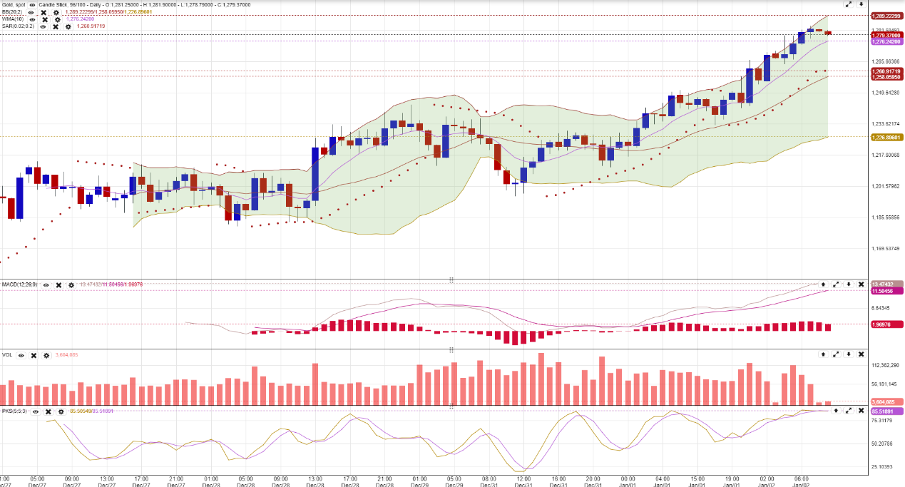 【黄金】下行支持位1275美元, 上方阻力位1290美元