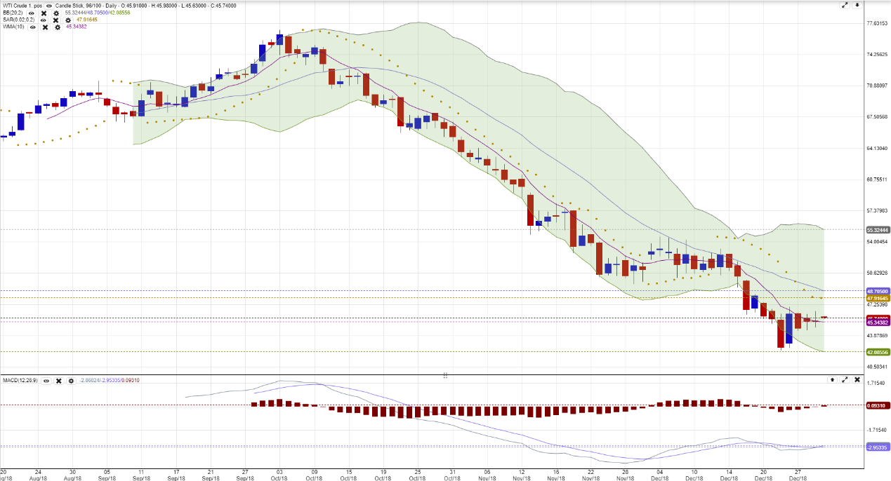 【原油】下行支持位45美元, 上方阻力位46美元