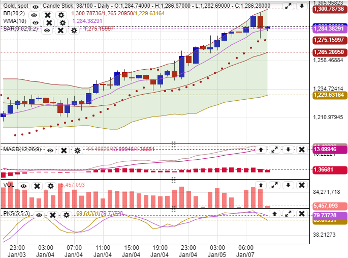 【黄金】下行支持位1285美元, 上方阻力位1300美元