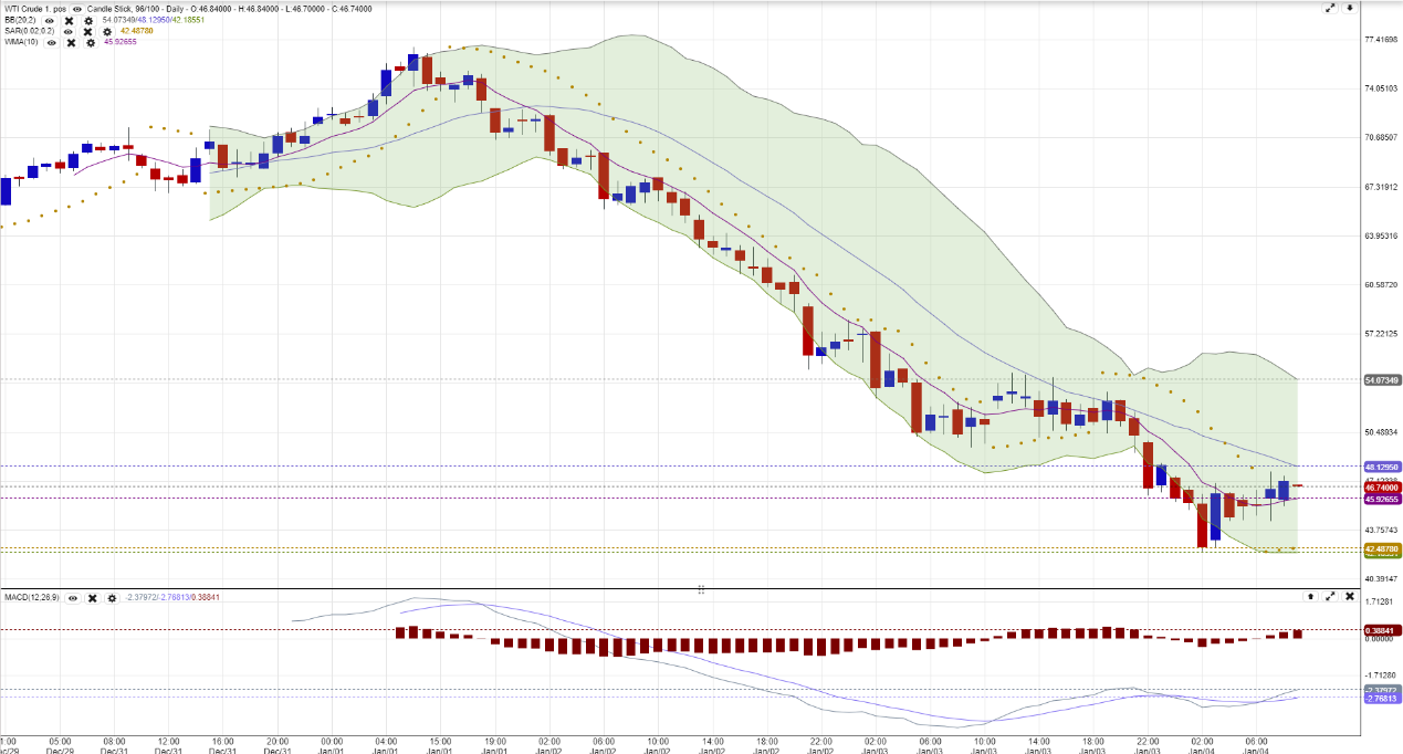 技术走势上,油价突破20天线,短线交易区间47.8至49美元。