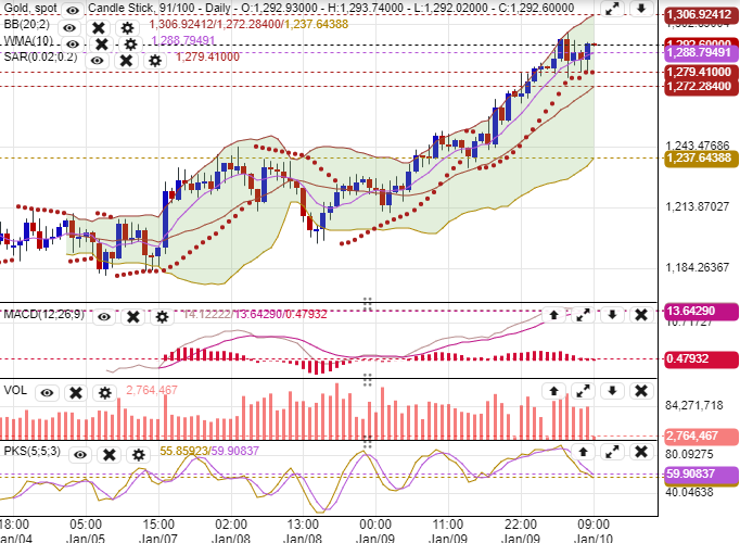 投资者可维持逢低多的策略,可在1285做多,上望1295/1300美元的中线目标,止损1275美元。