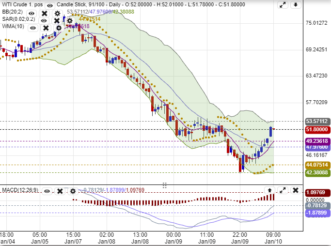 技术走势上,油价反弹,短线交易区间50/51.3至52美元。