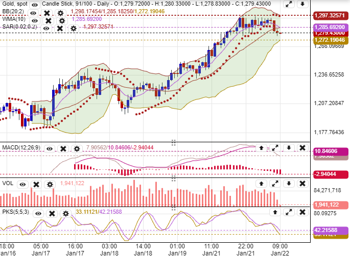 【黄金】下行支持位1272/75美元, 上方阻力位1280/85美元