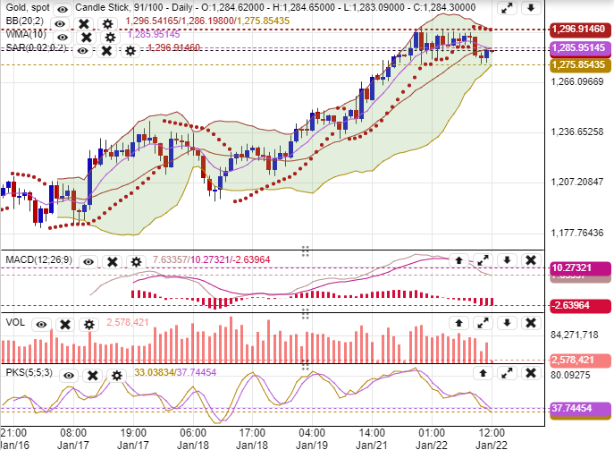 【黄金】下行支持位1277/80美元, 上方阻力位1286/90美元