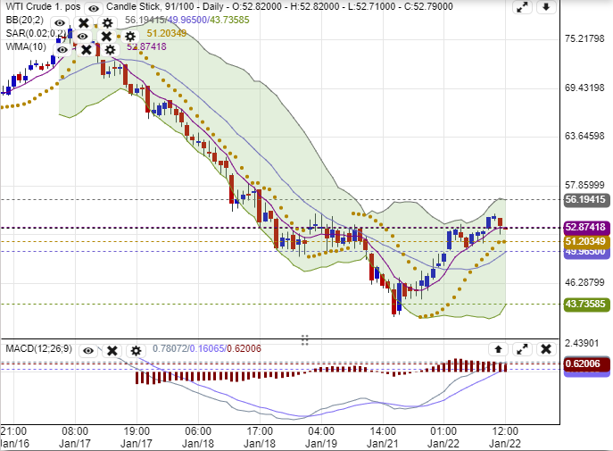 【原油】下行支持位53美元, 上方阻力位54.5美元