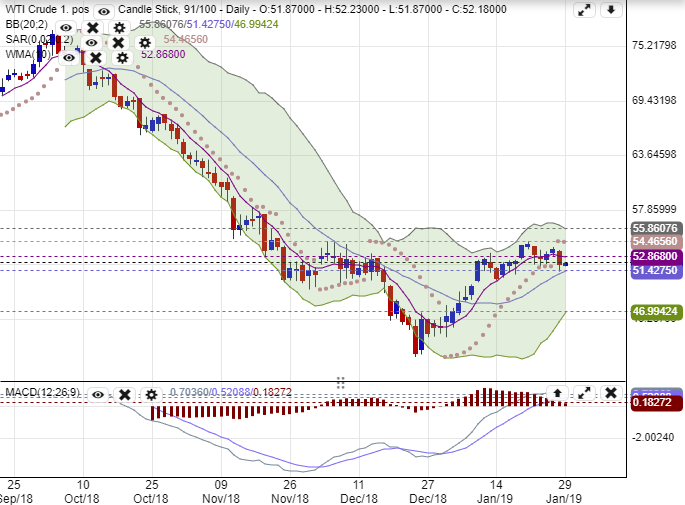 【原油】下行支持位51.5美元, 上方阻力位52.5美元