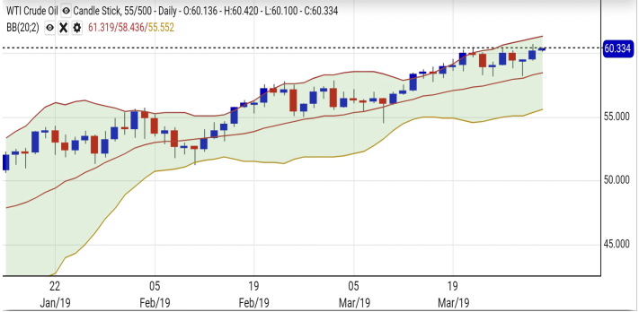 原油方面,上周五油价重上60美元,美国加强制裁委内瑞拉,以及石油出口国组织减产因素盖过经济放缓的负面打击,而美国上周活跃钻油井数量减少8个,反映美国页岩油有减产的迹象,有利油价。另一方面,俄罗斯能源部长诺瓦克(Alexander Novak)表示,有关俄方仅同意把减产协议延长3个月的报道并不属实。诺瓦克又指出,将在5月讨论减产协议,目前俄罗斯没有提案。减产协议有延期的倾向,加上市场憧憬中美贸易谈判有良好的结果,中国原油需求回升,有利油价重上60美元大关。
