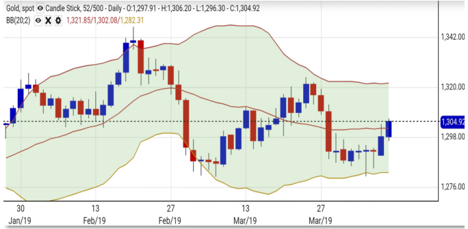 昨晚美国经济前景不稳,加上IMF再度下调全球经济增长预测至3.3%,市场对美国减息预期升温,美汇偏软并回试97水平。金价借势突破1300美元阻力,并达到我们昨日定下的目标价1305美元,轻松获利。另一方面,中美贸易谈判结果完成之际,特朗普威胁对欧洲货品征关税,欧美贸易谈判或将展开,前景甚为不明,避险情绪升温。