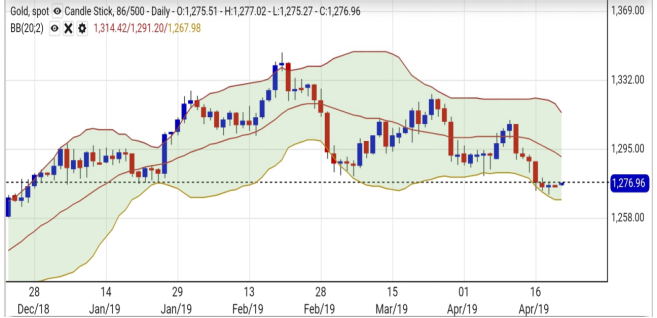 上周四美国股市上升,市场无视一连多天的公众假期,资金流入股市,金价受压。此外,周四美国公布的3月零售数据强劲,升幅不但高于市场预期,更创近一年半新高,反映美国通胀或重临,经济衰退的忧虑下降,美汇呈强并重新挑战97.5水平。加上美国通俄案报告修订版曝光,对总统特朗普有利,市场避险情绪减退,金价下跌,上方1280美元成空头的主要重空位,空头正主导金市,投资者可逢高做空。