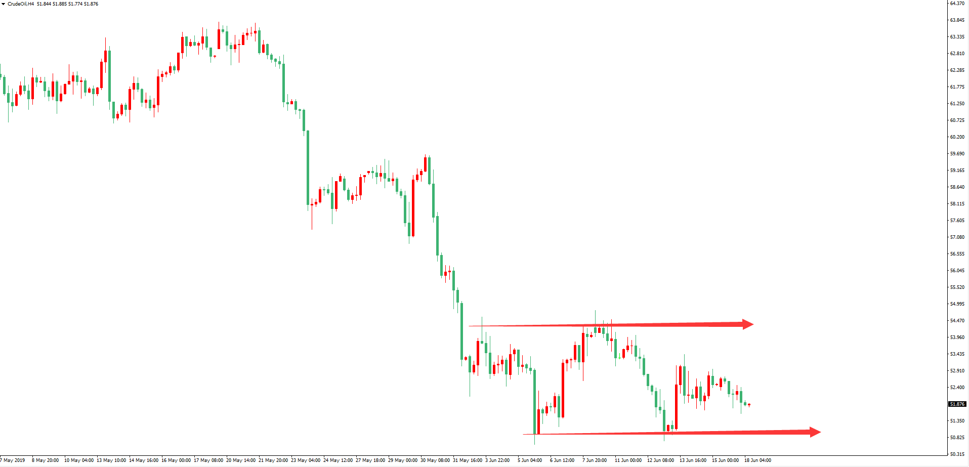 纽约期油价格4小时图