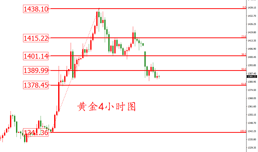 技术面,黄金自上周上冲至1438美元之后,一路震荡向下回调,从回调的幅度来看空头表现并不强劲,下方关注1380-1378美元一线的支撑,上方关注1400-1405美元的阻力。日内建议:1380-1378做多,止损1376,目标1400和1410,个人建议仅供参考。