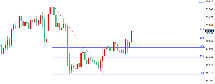 技术面看,油价至前期W底突破之后持续打开上方空间,目前已经开始测试7月1日下跌以来黄金分割61.8位置,建议58.6继续开多,止损58.3,上看59.9美元。