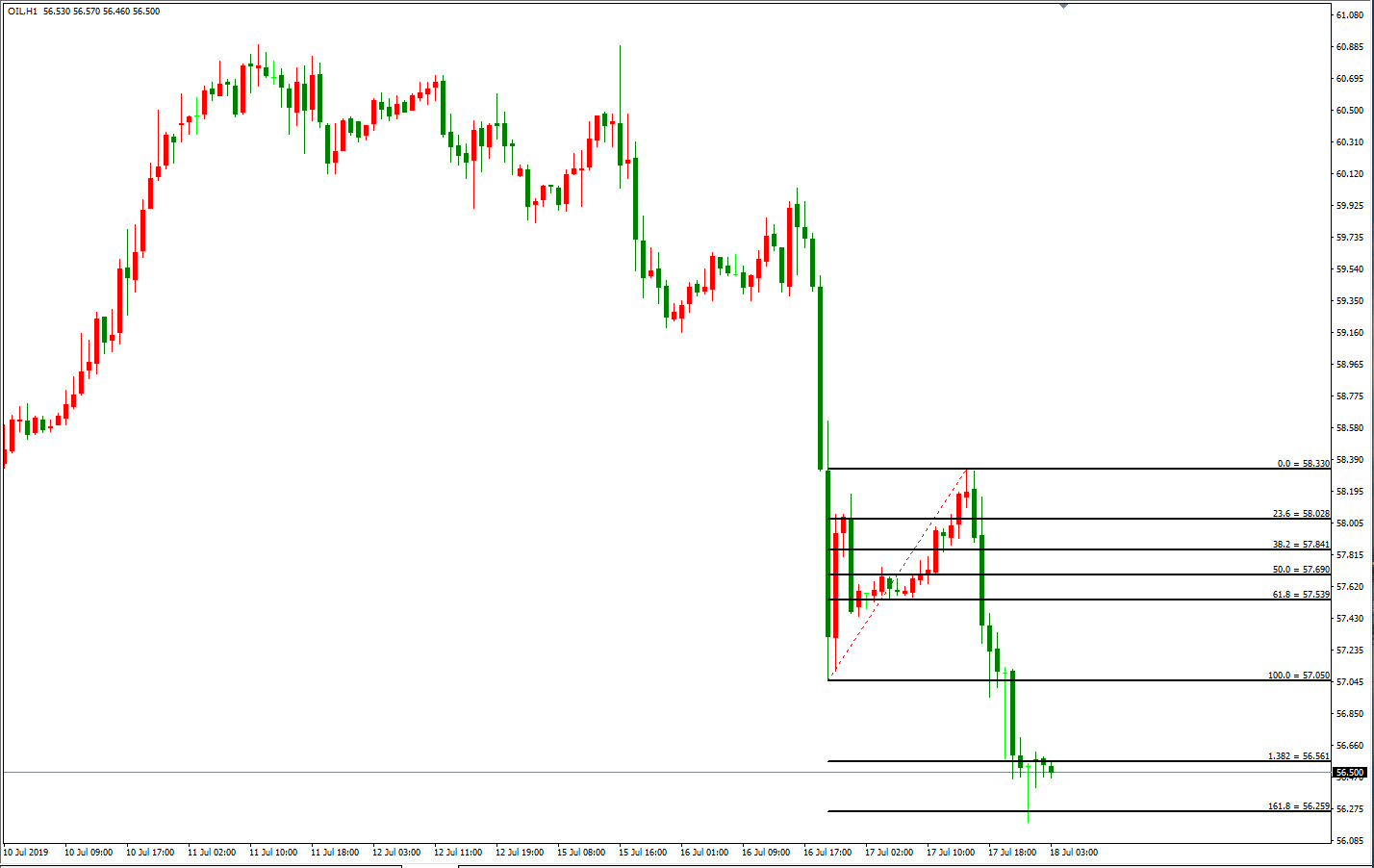 技术面上:原油小时级别,本周于高位61美元/桶附近开始回落下跌,其中从60美元/桶跌至57美元/桶时带来波段性的延伸,且随后的反弹幅度亦只在弱势反弹位。故在最后一段下跌走势中需严格关注关键区间是否能有效突破,谨防大概率的诱空行情。目前油价下方关键区间为56.3--56.6,日内交易者可尝试于该区间之内轻仓介入多单,待油价站上56.6之后再考虑加仓,而止损考虑在56附近,目标参考上方58和59。