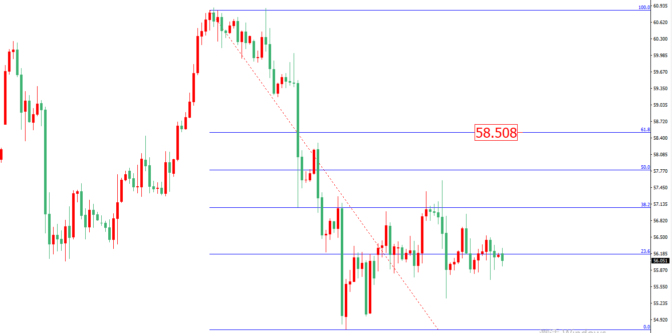 技术面上当前油价依旧维持4小时线级别前一段下跌走势中的黄金分割反弹,看油价测试61.8%的结构,也就是58.5美元,但因上周油价走出的三角结构仍难对多头完成蓄力,预计油价有可能再次测试55.5附近进行蓄力,但只要行情不正式下破,依旧可看多,建议等价格测试该位置之后进场做多或是价格上破56.5之后进行追多。