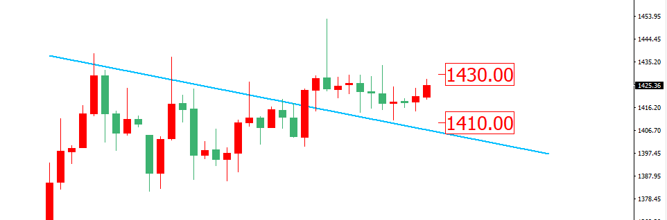 技术上看,目前黄金依旧维持在1410至1430区间的震荡格局,不过,近期行情走势在小级别中波动剧烈,加大了行情短期操作风险,建议在利率决议之前尽量减少操作。进场尽可能接近震荡区间上下轨附近。