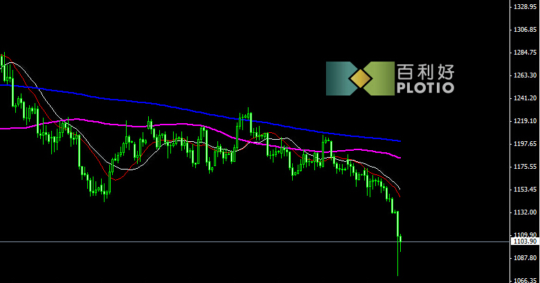 周二现货黄金早盘维持在1100美元附近。周一亚洲盘时段在没有任何利空消息下,金价闪崩暴跌近50美元,跌穿1100整数关口,创下2010年以来新低。金价暴跌后快速反弹但受阻于1120美元;欧美盘时段,当天并没有重要数据发布,金价反弹后震荡走低。今天美国没有经数据公布。