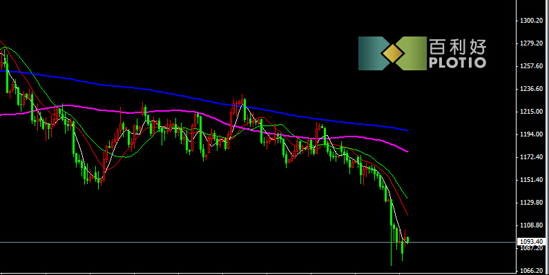 日线图上看,金价收于5日均线上,跌势暂缓,但反复震荡难免,料多空将围绕1088-1106区间争夺,金价整体弱势格局没改变。上方压力:1190 1175 1120 下方支撑: 1080 1040 1000(注意做好风险控制,更多最新策略请关注百利好金业/原油/外汇百利好金融集团)