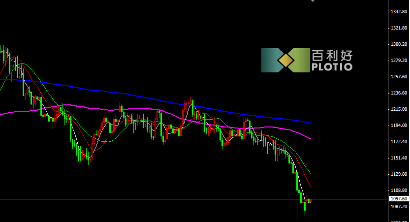 日线图上看,金价继续收稳5日均线上,跌势暂缓,但反复震荡难免。目前做空动能减缓,短期区间1086-1106,不过金价整体弱势格局没改变。上方压力:1190 1175 1120 下方支撑: 1080 1040 1000(注意做好风险控制,更多最新策略请关注百利好金业/原油/外汇百利好金融集团)