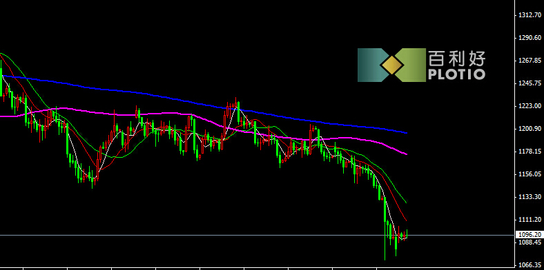 日线图上看,金价继续收稳5日均线上,跌势暂缓,但反复震荡难免。目前多空力量暂时平衡,短期区间1086-1106,不过金价整体弱势格局没改变。上方压力:1190 1175 1120 下方支撑: 1080 1040 1000(注意做好风险控制,更多最新策略请关注百利好金业/原油/外汇百利好金融集团)