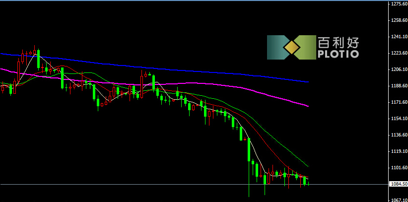 日线图上看,昨日并没能收涨,1080美元支撑告急,如果不能重返5日均线上,恐引发探底行情。金价上行压力沉重,区间1080-1100反复震荡,寻求突破,整体弱势格局没改变。上方压力:1190 1175 1120 下方支撑: 1080 1040 1020(注意做好风险控制,更多最新策略请关注百利好金业/原油/外汇百利好金融集团)