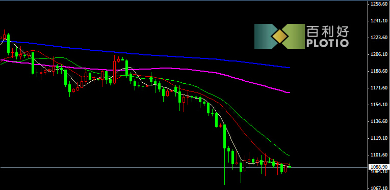 日线图上看,金价如果不能站稳5日均线上,短期仍然弱势。金价上行压力沉重,区间1080-1100反复震荡,寻求突破,整体弱势格局没改变。上方压力:1170 1145 1120 下方支撑: 1080 1040 1020(注意做好风险控制,更多最新策略请关注百利好金业/原油/外汇百利好金融集团)