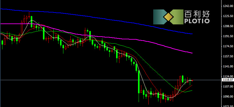 日线图上看,金价守稳5日均线上,短期均线支撑反弹。金价在1110-1120区间震荡,多空分歧加剧,将面临方向抉择。上方压力:1170 1145 1130 下方支撑: 1110 1100 1093(注意做好风险控制,更多最新策略请关注百利好金业/原油/外汇百利好金融集团)
