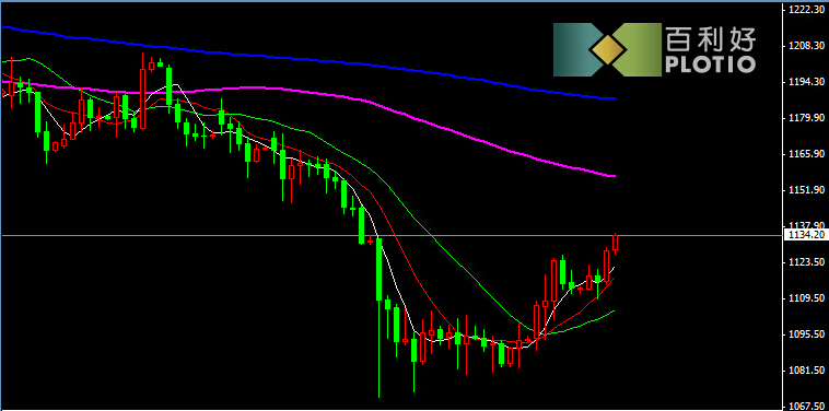 日线图上看,金价突破1130阻力,反弹势头保持完好,短期均线支撑反弹。目前反弹到了关键时刻,1145上方是前期密集的成交区域,阻力较强,持谨慎态度。上方压力:1190 1165 1145 下方支撑:1126 1110 1100 (注意做好风险控制,更多最新策略请关注百利好金业/原油/外汇百利好金融集团)