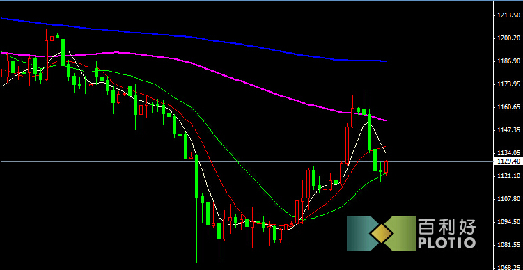 日线图上看,金价守稳在20日均线上,显示下方支撑较强。料将在5日均线和20日均线区间震荡,寻求方向。1110-1126为金价前期上涨脱离的箱体。目前金价在1200下方仍视为反弹行情。上方压力: 1190 1175 1145 下方支撑:1110 1090 1080(注意做好风险控制,更多最新策略请关注百利好金业/原油/外汇百利好金融集团)