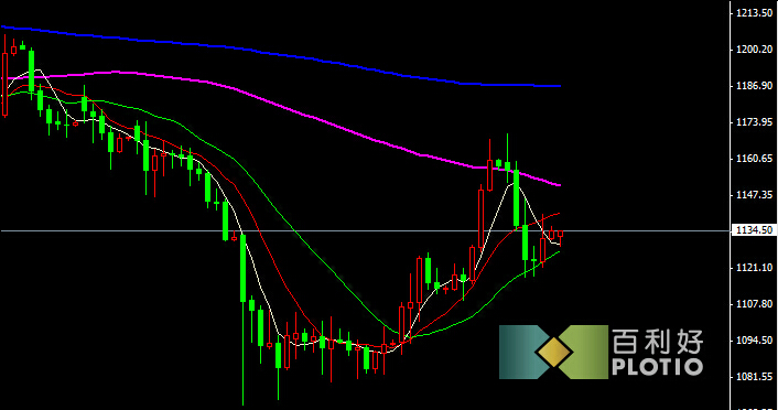 日线图上看,金价收稳在5日均线上,有望继续测试1140压力,料将反复震荡。目前金价在1110-1126箱体处支撑较强。目前金价在1200下方仍视为反弹行情。上方压力: 1190 1175 1145 下方支撑:1110 1090 1080(注意做好风险控制,更多最新策略请关注百利好金业/原油/外汇百利好金融集团)