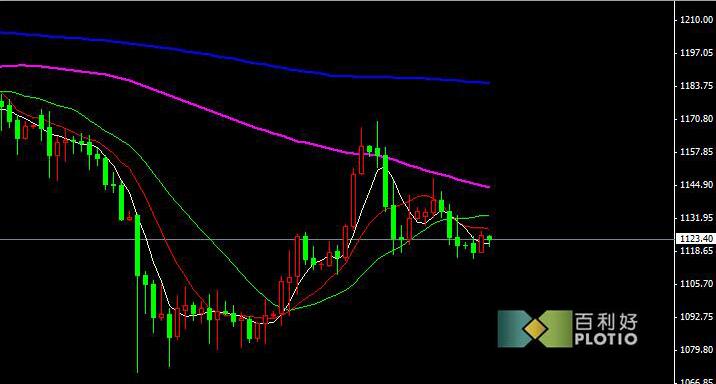 日线图上看,金价突破5日均线,跌势有所减缓,若反弹侧关注阻力1133争夺。整体金价仍处运行在下降通道,显弱势,料将继续震荡整理。上方压力: 1175 1145 1133下方支撑:1110 1090 1080(注意做好风险控制,更多最新策略请关注百利好金业/原油/外汇百利好金融集团)