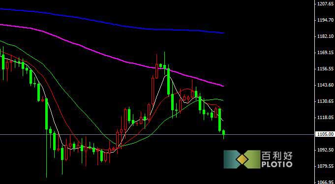 日线图上看,金价跌破1110附近强箱体支撑,重回5日均线。短期均线继续压制金价反弹。整体金价仍处运行在下降通道,弱势格局更加明显,料将震荡探底。上方压力: 1145 1133 1117 下方支撑:1100 1090 1080(注意做好风险控制,更多最新策略请关注百利好金业/原油/外汇百利好金融集团)